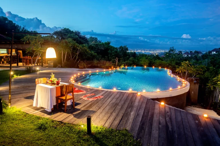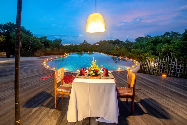 One time lunch OR 1 hour Balinese massage, one time dinner & Fruit basket setup for 2 for 8 nights stay